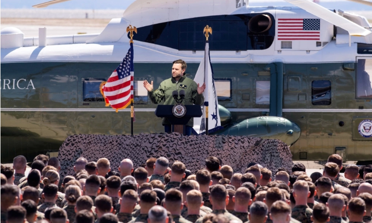 Phó tổng thống Mỹ JD Vance ngày 26/3 tới thăm căn cứ Thủy quân Lục chiến Quantico tại Triangle, bang Virginia, phát biểu khích lệ các binh sĩ sau đó đích thân phục vụ các binh sĩ bữa trưa tại căng tin, cùng ngồi ăn với họ. Ông đội chiếc mũ ghi dòng chữ "một lần làm lính Thủy quân Lục chiến, cả đời làm lính Thủy quân Lục chiến".
