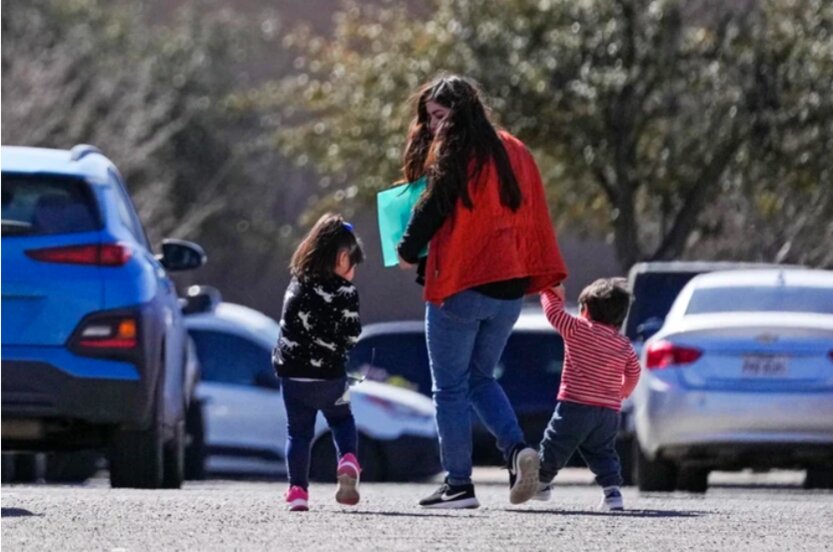 Một người mẹ đưa các con tiêm vaccine ngừa bệnh sởi hồi tháng trước tại Odessa, Texas. Ảnh: NBC News