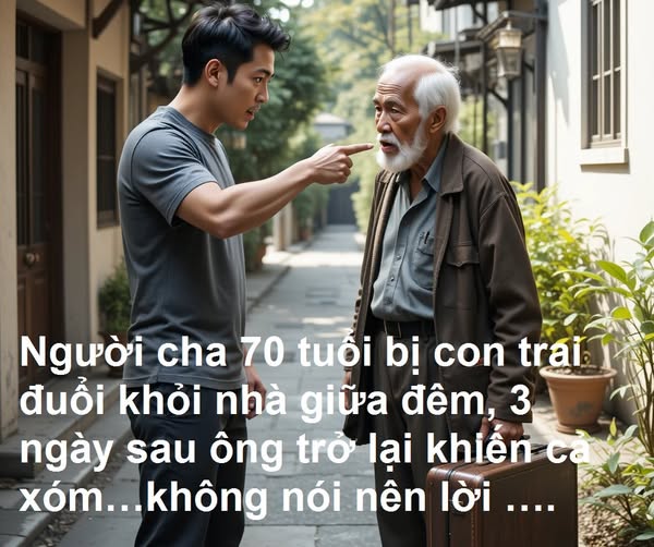 Ông Phúc ngước lên nhìn con trai, ánh mắt già nua đầy tổn thương. Ông không cãi lại, chỉ lặng lẽ bước về phòng, gói ghém vài bộ quần áo cũ rồi rời đi trong đêm tối.