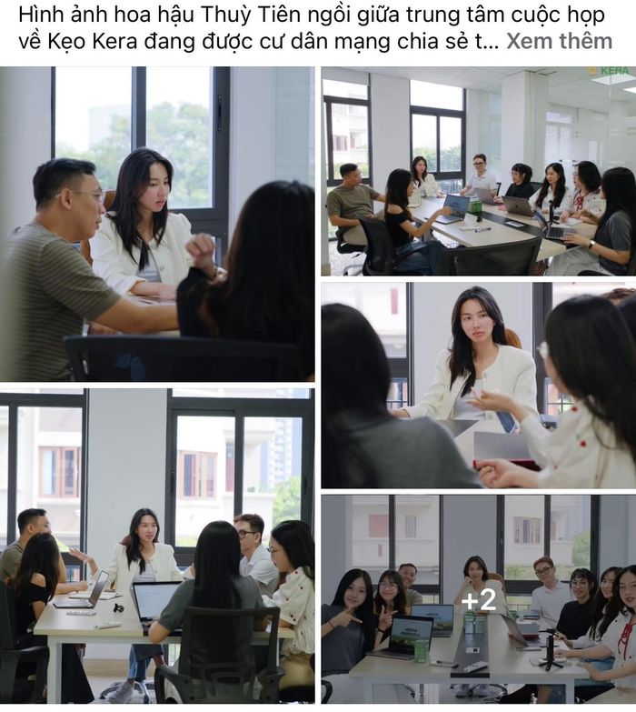 Hình ảnh hoa hậu Thùy Tiên ngồi giữa trung tâm cuộc họp về kẹo Kera được cư dân mạng chia sẻ rộng rãi trở lại