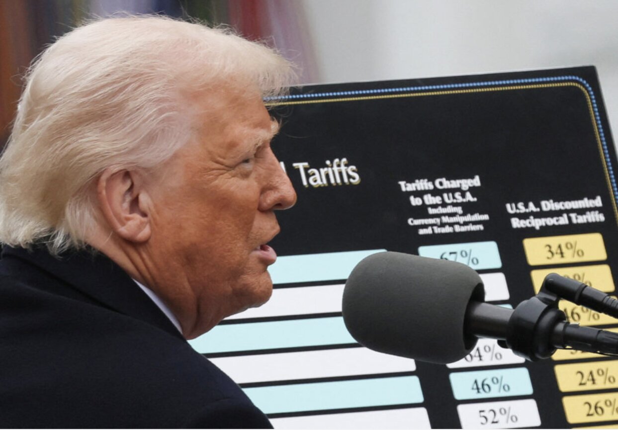 Tổng thống Mỹ Donald Trump công bố các mức thuế đối ứng mới vào ngày 2/4 tại Nhà Trắng. Ảnh: PBS