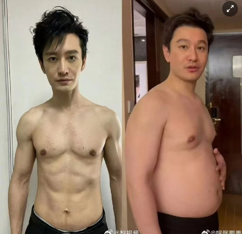 Hình ảnh hiện tại và trước khi giảm cân của Huỳnh Hiểu Minh. Ảnh: China Times.