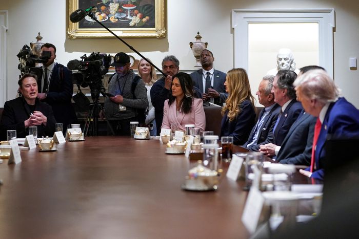 Tỷ phú Elon Musk phát biểu trong cuộc họp nội các của chính quyền Trump ngày 10/4. Ảnh: Reuters.