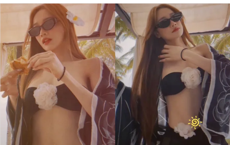 Nhă Phương mặc áo tắm nhỏ xíu khoe vẻ ngoài căng tṛn.