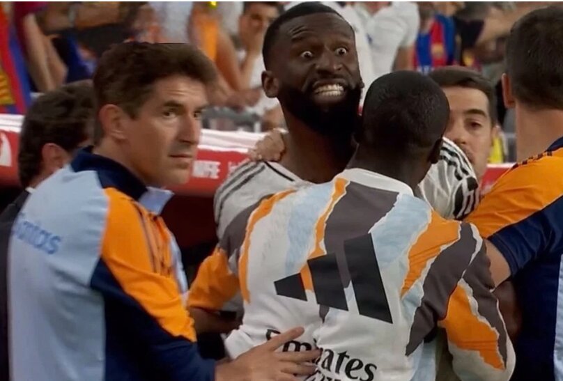 Rudiger cũng không phải dạng vừa. Anh lập tức đòi lao vào sân, muốn "ăn thua đủ" với trọng tài Bengoetxea. Ít nhất 3 cầu thủ và 2 thành viên ban huấn luyện Real Madrid phải ôm trung vệ tuyển Đức lại, ngăn anh vào sân tấn công trọng tài.