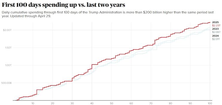 Old  Default Despite Trump's promised cuts, U.S. spent more than $200 billion more in first 100 days than last year