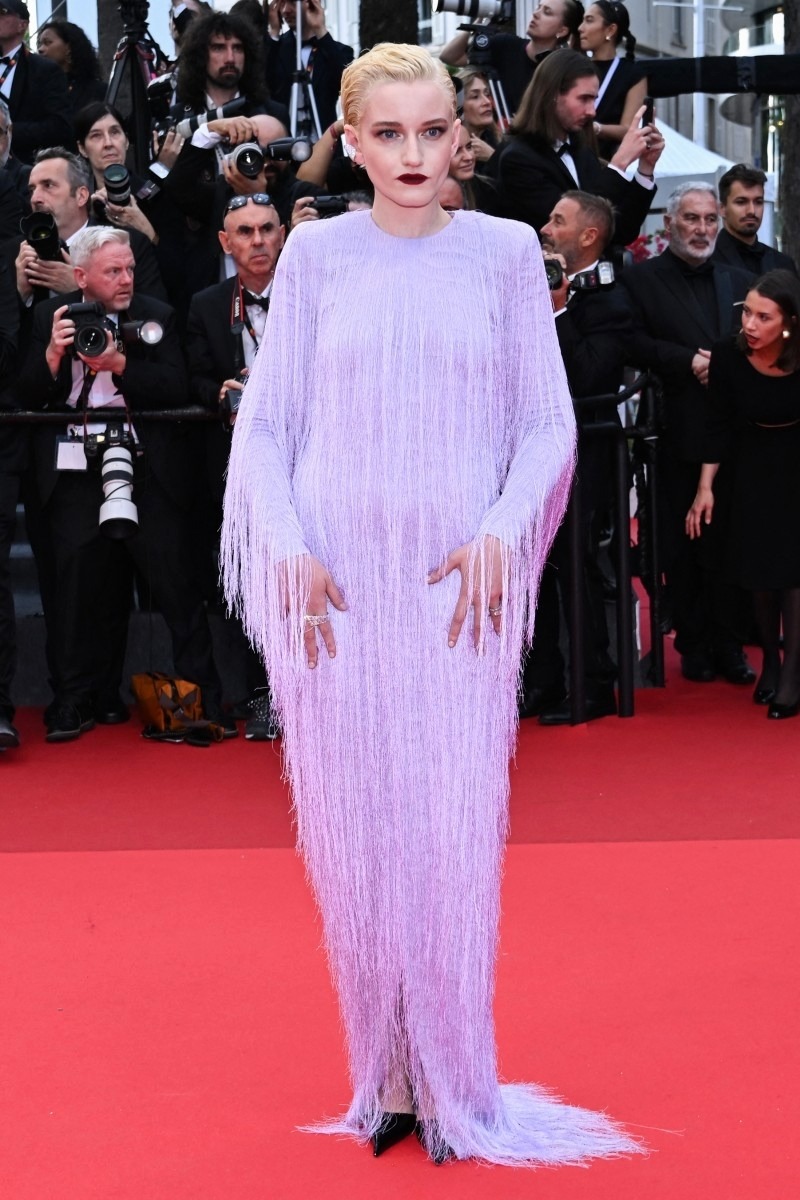 Khách mời của buổi chiếu Eddington còn có Julia Garner trong bộ đầm tua rua của Haider Ackermann thiết kế cho Tom Ford, phối trang sức Messika.