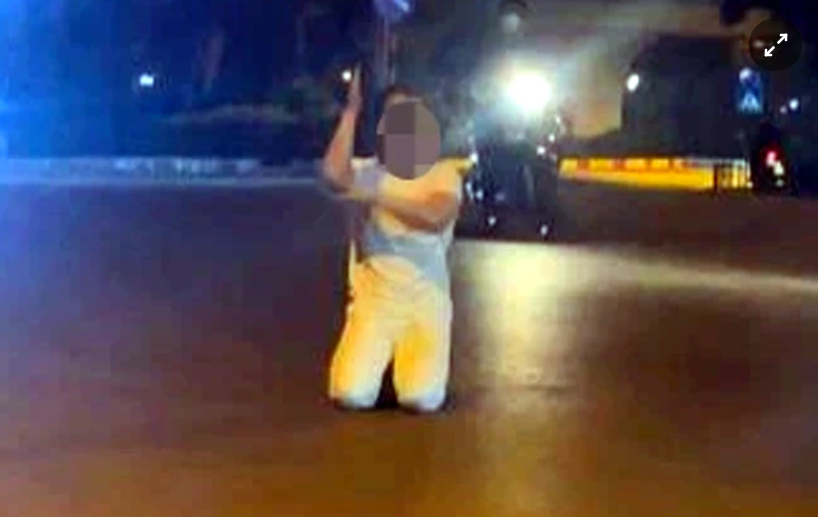 Hình ảnh nam thanh niên quỳ lạy giữa đường. Ảnh: Cắt từ clip.