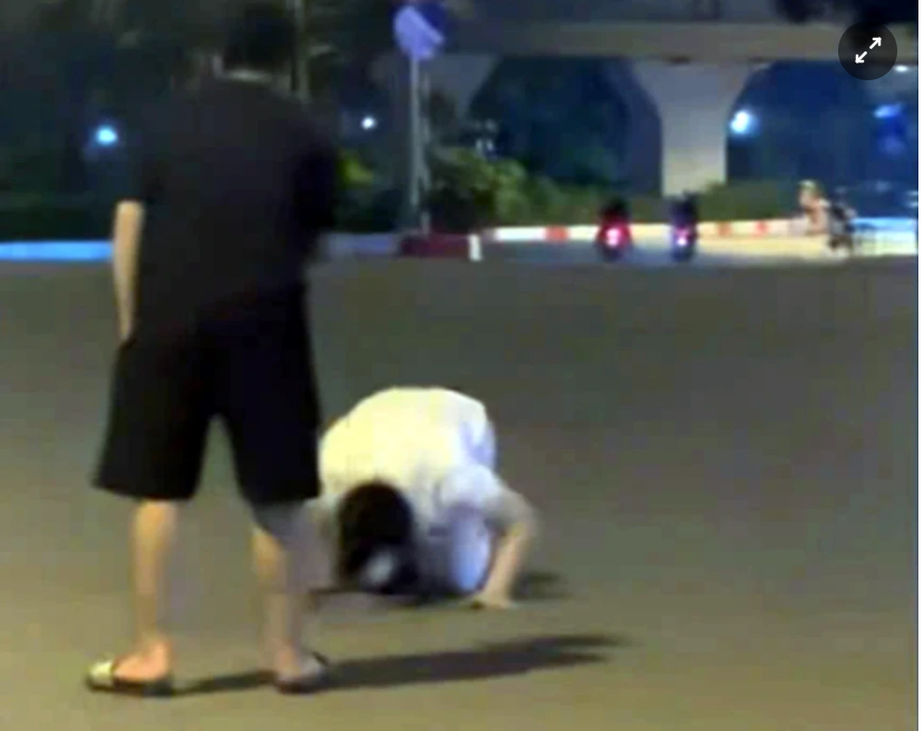 Theo hình ảnh lan truyền trên mạng xã hội, thanh niên này không chỉ quỳ lạy mà còn thực hiện động tác liên tục, cho đến khi đầu bị va chạm đến chảy máu.