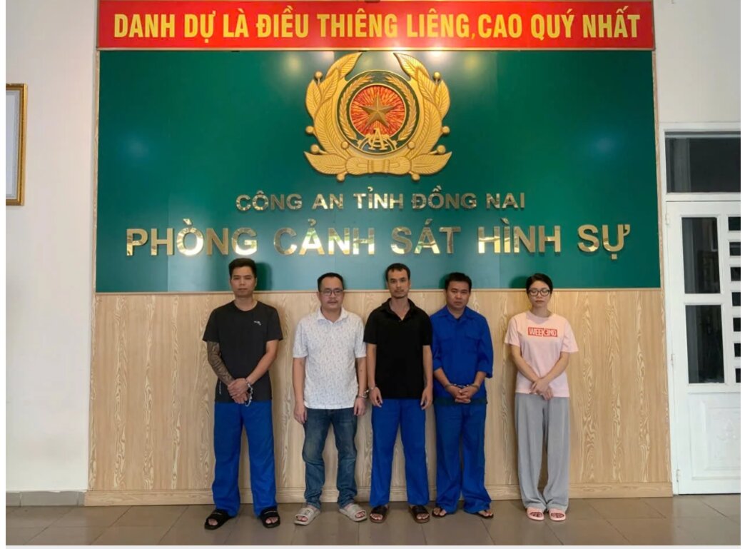 Ngày 7/6, Cơ quan CSĐT Công an tỉnh Đồng Nai đã ra quyết định khởi tố vụ án hình sự, khởi tố bị can, bắt tạm giam 5 đối tượng gồm: Nguyễn Quốc Hùng (41 tuổi), Bùi Thị Thanh Nga (34 tuổi, bạn gái của Hùng, quê TP.Hà Nội), Hồ Long Trí (45 tuổi, ngụ TP.HCM), Đinh Hữu Hay (34 tuổi, quê Bình Định) và Thân Văn Hiệp (43 tuổi, ngụ tỉnh Đồng Nai) về tội lừa đảo chiếm đoạt tài sản.
