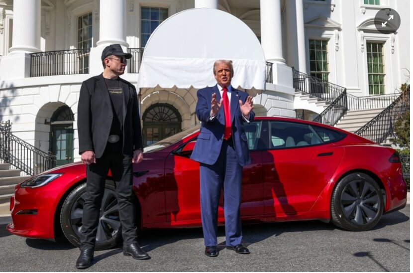 Tổng thống Trump và tỷ phú Elon Musk phát biểu bên cạnh chiếc Tesla Model S tại khu vực Nhà Trắng ngày 11/03/2025, tại Washington, DC. Ảnh: Reuters