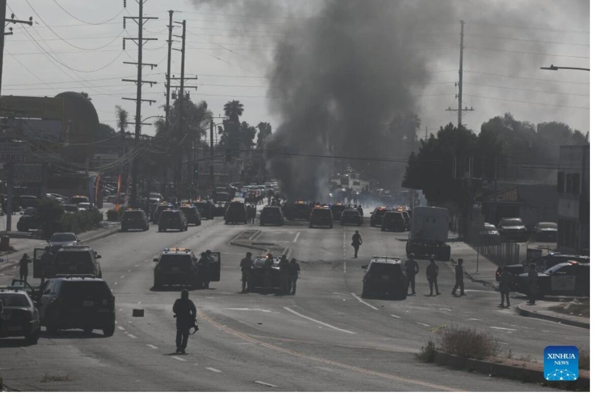 Biểu tình bùng phát tại California. Ảnh: Tân Hoa Xã