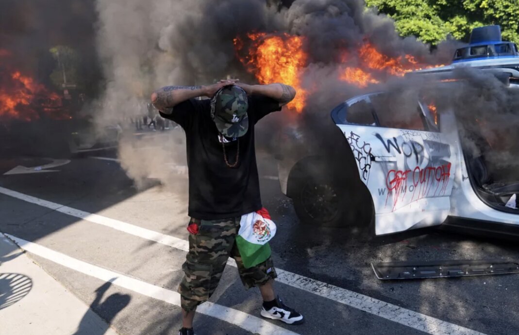 Tại trung tâm thành phố Los Angeles, các cuộc biểu tình đã bùng phát thành đụng độ, khi lực lượng chức năng buộc phải sử dụng lựu đạn hơi cay và dường như là các loại đạn phi sát thương để giải tán đám đông biểu tình.