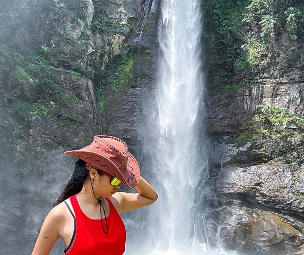 Đứng trước thác Háng Đề Chơ, nước đổ trắng xóa từ vách đá dựng đứng, cô gái gen Z gần như quên hết mọi mỏi mệt đã tích tụ suốt hành trình. (Ảnh: Chiêu Surin)
