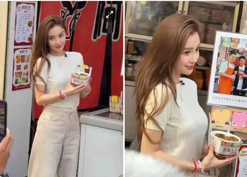 Gần đây, Angelababy gây sốc khi xuất hiện trên đường phố Macau để quảng bá cho một tiệm đồ ăn vặt bình dân. Nhiều người phát hiện và ghi lại cảnh nữ diễn viên chụp hình, quay quảng cáo ngay trước cửa tiệm. Loạt ảnh sau đó nhanh chóng lan truyền trên mạng xã hội, kéo theo nhiều bình luận.