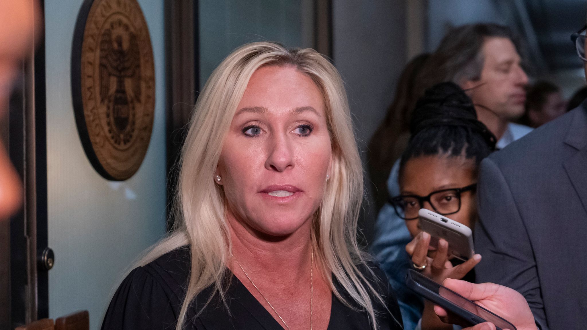Greene, cùng với đồng nghiệp là Dân biểu Thomas Massie (R-KY), đã lên tiếng phản đối sự can thiệp của Hoa Kỳ vào cuộc xung đột Israel-Iran. Greene cũng thường xuyên bỏ phiếu chống lại luật ủng hộ Israel tại Hạ viện. Greene đã bỏ phiếu chống lại cả ba dự luật viện trợ cho Israel sau vụ tấn công ngày 7 tháng 10, cũng như một dự luật buộc phải bán vũ khí cho Israel trong nhiệm kỳ tổng thống của Biden.