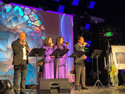Bà Kim Dzung, cháu gái Linh Mục Nguyễn Kim Long, đại diện gia đình cảm ơn tấm chân tình và sự hiện diện của khán giả trong đêm nhạc tưởng niệm.