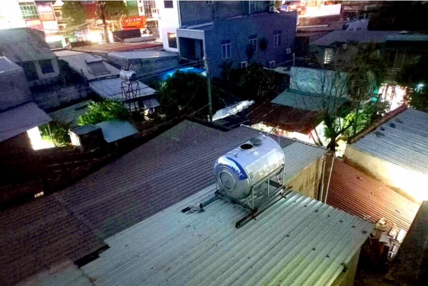 Bồn chứa nước trên mái nhà có bộ xương người bên trong. Ảnh: A.X
