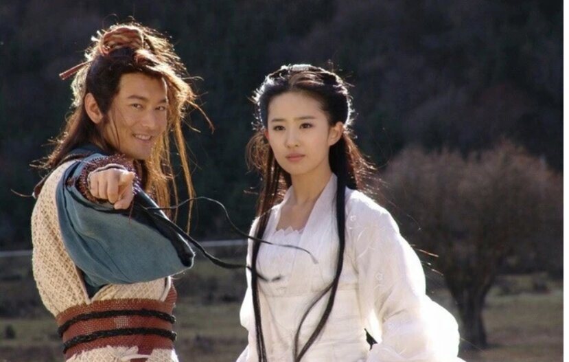 Huỳnh Hiểu Minh và Lưu Diệc Phi đóng phim Thần điêu đại hiệp. Ảnh: Weibo.