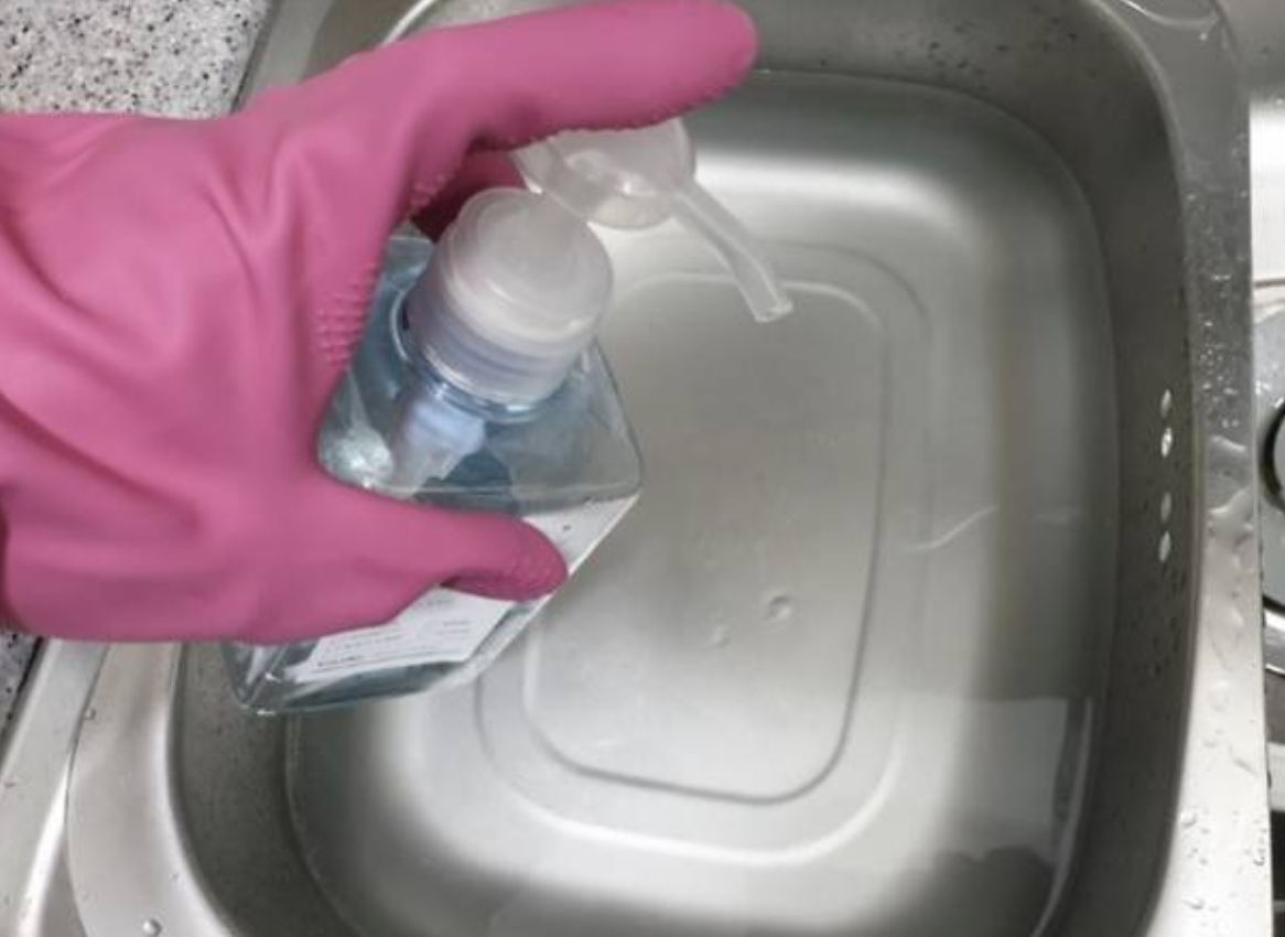 Cách khắc phục: Luôn pha loãng nước rửa chén với nước theo tỉ lệ khuyến nghị của nhà sản xuất hoặc tự ước lượng. Nên pha vào một cái chén nhỏ hoặc ca, khuấy đều cho tạo bọt rồi mới dùng miếng rửa chén nhúng vào dung dịch này để cọ rửa.