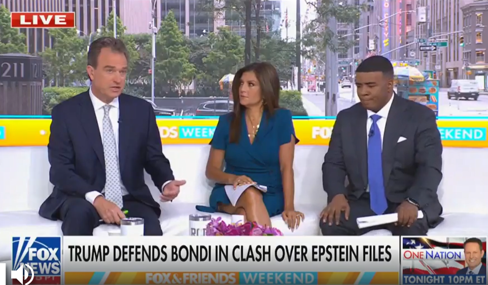 Trong chương trình phát sóng lúc 6 giờ sáng Chủ nhật, người dẫn chương trình Kevin Corke — cùng với người dẫn chương trình Charles Hurt và Rachel Campos-Duffy — đã phản hồi bài đăng gây sốc của tổng thống trên Truth Social hôm thứ Bảy, trong đó ông chỉ trích chính những người ủng hộ mình vì vẫn tiếp tục tập trung vào câu chuyện và chỉ trích Bộ trưởng Tư pháp Pam Bondi đang gặp khó khăn về cách bà xử lý cuộc điều tra Epstein.