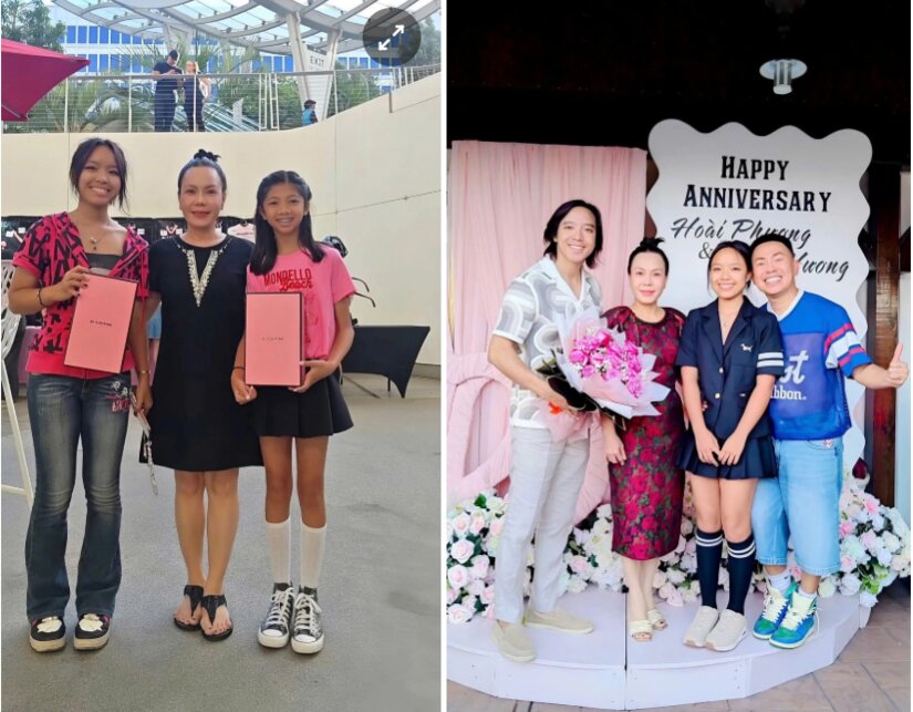 Trước đó không lâu, hôm 12/7, Việt Hương mở tiệc kỷ niệm 19 năm cưới Hoài Phương. "Cảm ơn anh đã ở bên cạnh lúc vui vẻ cũng như đau bệnh, đã yêu thương và chịu chia sẻ cùng nhau để giữ gia đình hạnh phúc", cô viết. Con gái Việt Hương cũng xuất hiện trong bữa tiệc với phong cách nữ sinh, mặc đầm xếp ly và áo blazer cùng màu. Cô bé được khen ngợi có gương mặt thanh tú, dịu dàng, cùng nụ cười tươi thu hút người đối diện.
