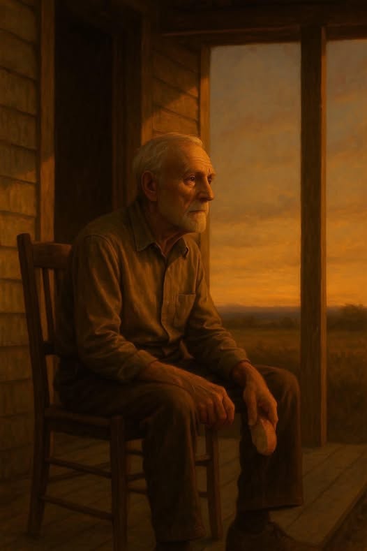 Chiều nào cũng vậy, ông ngồi một mình trên chiếc ghế nhựa cũ kỹ, trước hiên nhà.
