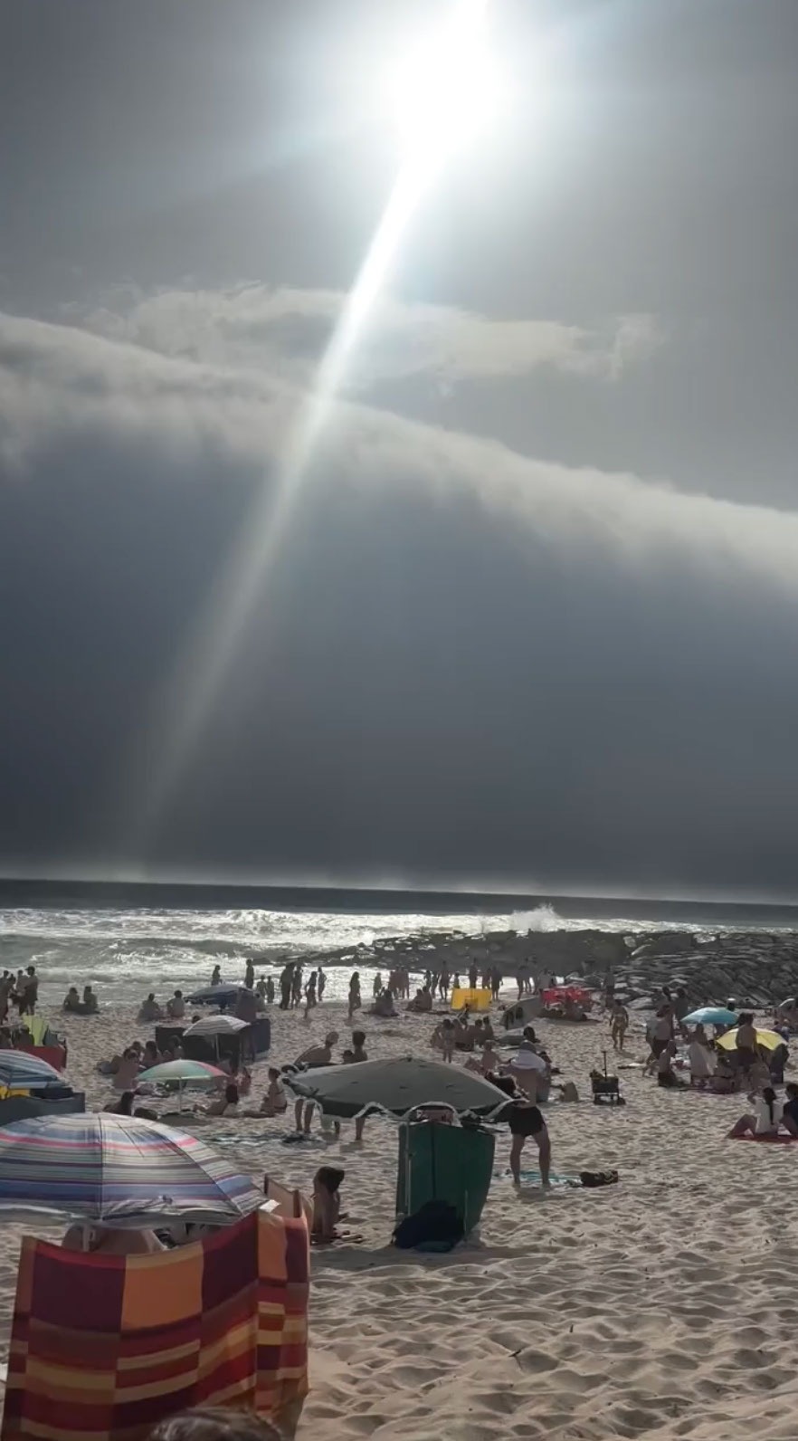 Mới đây, hiện tượng hiếm gặp này được ghi nhận tại bãi biển Praia de Buarcos (Bồ Đào Nha), khi dải mây đen dài hàng chục km cuộn cuộn tiến sát vào bờ, mang theo gió lớn và che khuất mặt trời.