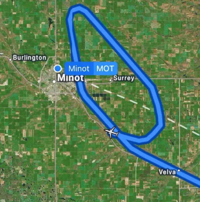 Phi công cho biết tháp kiểm soát không lưu đã cho phép anh tiếp cận Sân bay Quốc tế Minot và hướng dẫn anh rẽ phải, nhưng khi nhìn sang, anh thấy một chiếc oanh tạc cơ B-52. Phi công sau đó được yêu cầu rẽ trái, nhưng anh thấy chiếc oanh tạc cơ đang "bay theo quỹ đạo hội tụ" với máy bay của mình (bay theo hướng sẽ khiến chúng tiến lại gần nhau và có khả năng va chạm). Các thành viên tổ bay và hành khách ngồi bên phải máy bay đều có thể nhìn thấy oanh tạc cơ từ cửa sổ.