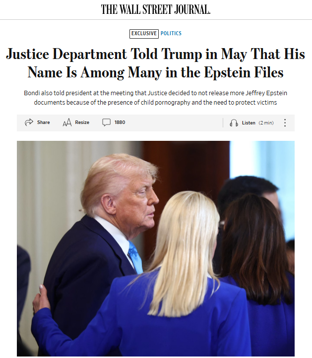 Old  Default WSJ đưa tin: Bộ Tư pháp đã nói với Trump vào tháng 5 rằng tên ông nằm trong số nhiều 'Hồ Sơ Epstein'