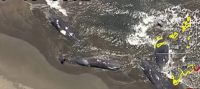 Chỉ vài giờ sau khi Nhật Bản phát đi cảnh báo sóng thần khẩn cấp vì trận động đất, một hiện tượng kỳ lạ đã xảy ra tại bờ biển Chiba khi nhiều con cá voi lớn bất ngờ trôi dạt vào bờ, nằm bất động trên cát.