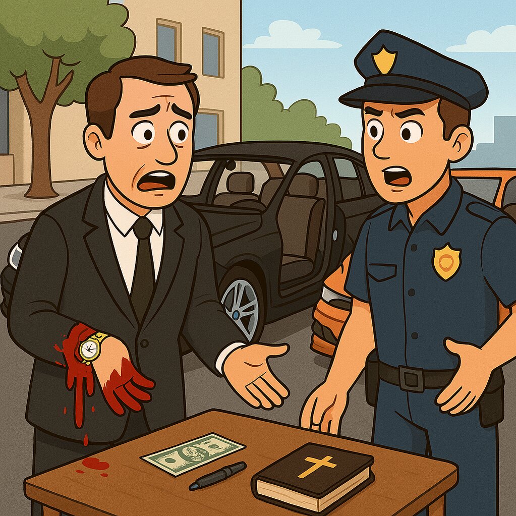 Một luật sư vừa bước ra khỏi xe BMW thì bị xe khác quẹt mất cửa. Ông ta tức giận, la lối om sòm. Cảnh sát đến, nhìn ông rồi nói: