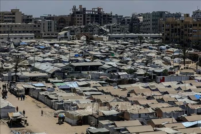 Lều trại cho người sơ tán lánh nạn Palestine tại thành phố Gaza ngày 4/8/2025. Ảnh: THX/TTXVN