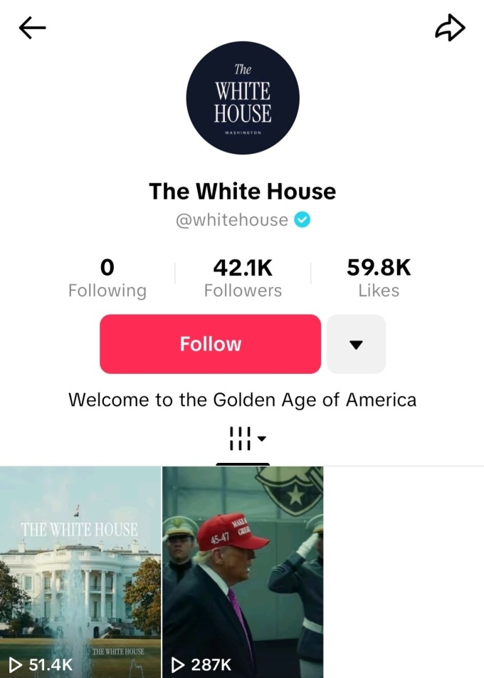 Old  Default White House launches TikTok account with Trump saying 'I am your voice'