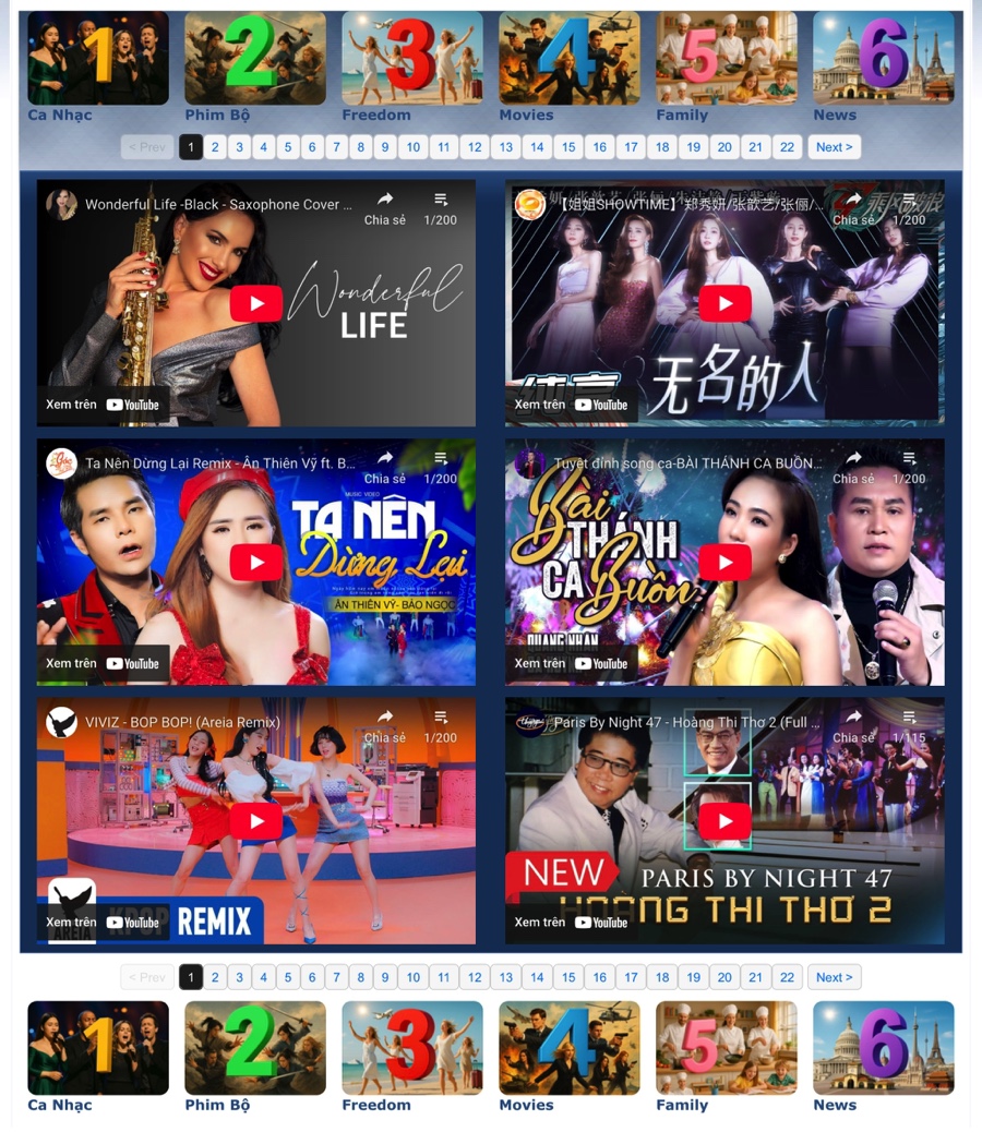 VietBF update tính năng Playlist – nơi tổng hợp và sắp xếp gần 20.000 video YouTube phong phú, được chia thành 6 mục lớn để mọi thành viên dễ dàng thưởng thức:
