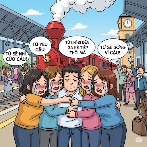 Người thì gào lên: – Đừng đi mà! – Ở lại đi! – Tớ không sống nổi nếu thiếu cậu!