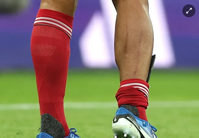Pha vào bóng này khiến người hâm mộ lo lắng cho Van Dijk. Khi trung vệ người Hà Lan kéo vớ xuống, để lộ ra những vết sẹo rõ rệt trên bắp chân.