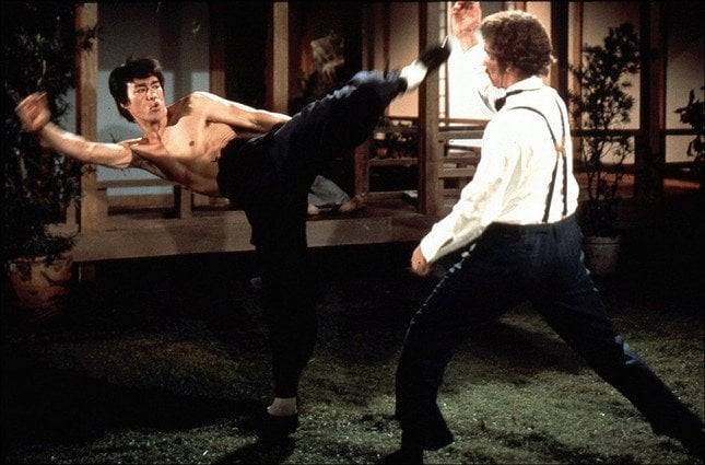 Pha đá bay người trở thành một biểu tượng trong sự nghiệp điện ảnh của Lý Tiểu Long. Ảnh: Internet.