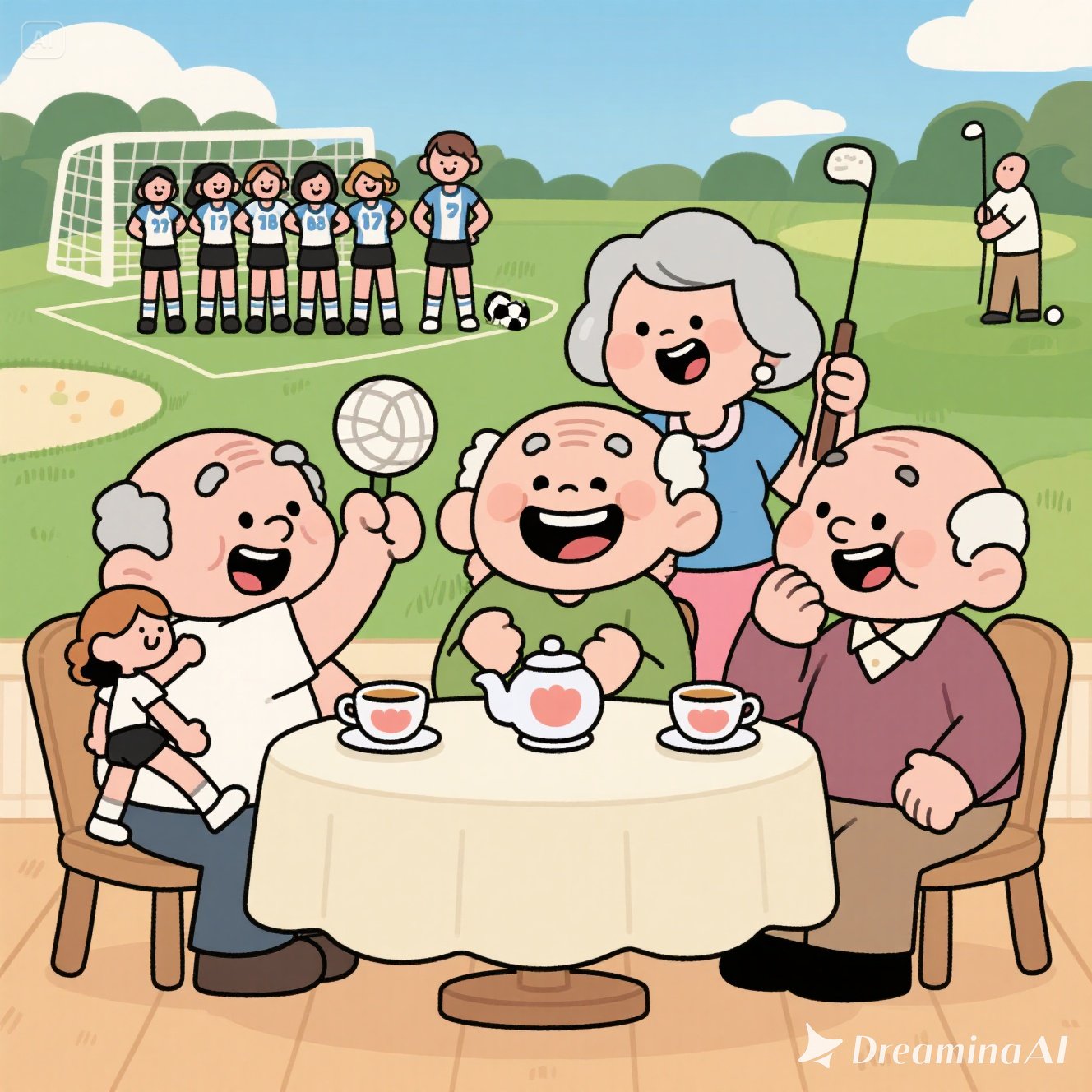 Ba ông bạn già ngồi uống trà, chuyện trò rôm rả. Đến đoạn khoe con cái, ông thứ nhất hớn hở nói: – Tôi chỉ thiếu một đứa con gái nữa là đủ lập đội bóng chuyền nữ!