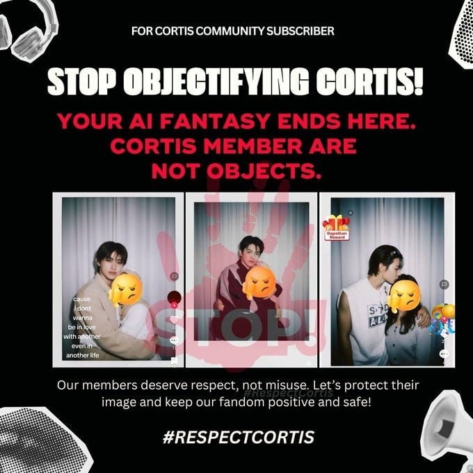 “Chúng tôi xin nhắc nhở tất cả người hâm mộ không được sử dụng AI hoặc chỉnh sửa ảnh thành viên theo cách gợi dục hoặc không phù hợp. Các thành viên Cortis là con người và xứng đáng được tôn trọng, không phải là những vật thể. Hãy cùng nhau bảo vệ hình ảnh của họ và duy trì môi trường fandom lành mạnh”, thông điệp viết.