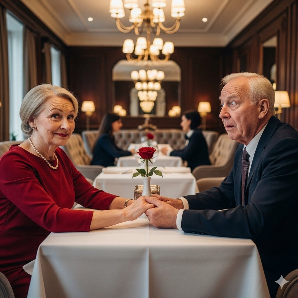 Tại một nhà hàng, một cặp vợ chồng già đang kỷ niệm 70 năm ngày cưới. Người chồng nắm tay vợ và nói: