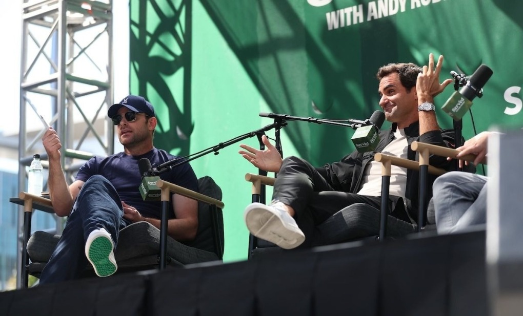 Federer (phải) bình luận tại Laver Cup 2025. Ảnh: Laver Cup
