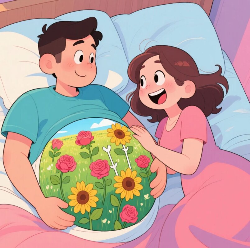 Đêm thứ nhất, chồng vừa xoa bụng vợ vừa thủ thỉ: