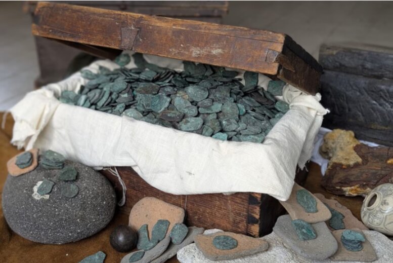 Lô hiện vật mới nhất bao gồm 5 đồng escudo vàng, hơn 1.000 đồng reale bạc (còn gọi là "đồng tám miếng") được đúc từ các thuộc địa của Đế quốc Tây Ban Nha cổ đại, bao gồm các vùng của Bolivia, Mexico và Peru ngày nay; cùng một số hiện vật vàng quý giá khác.