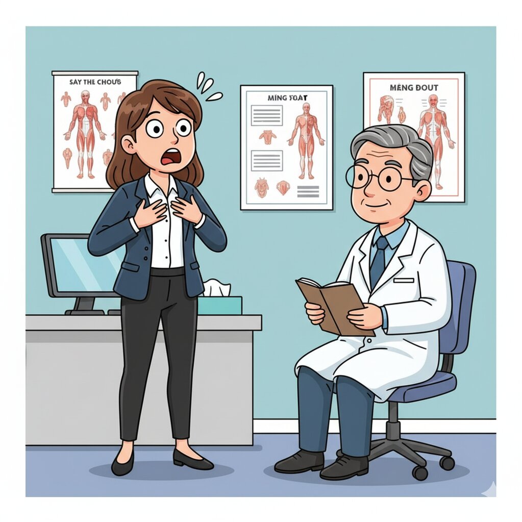 Một cô nhân viên văn phòng bị nấc cụt kéo dài suốt nhiều ngày, thử đủ mọi cách – uống nước, bịt mũi, dọa ma… mà vẫn không khỏi. Cuối cùng, cô đành đến phòng khám.