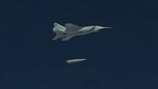 Một máy bay phản lực của Nga bắn tên lửa siêu thanh Kinzhal. Ảnh Sputnik
