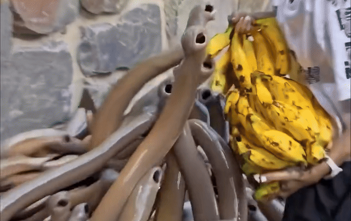 Old  Default Clip: Cô gái cho bầy 'đỉa khổng lồ' ăn chuối gây sốc, dân mạng tranh cãi dữ dội