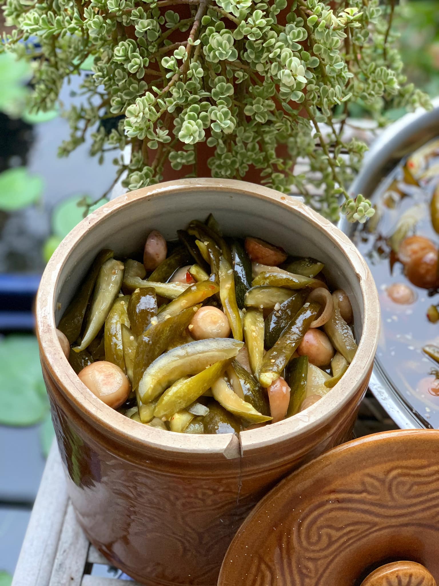 - Đổ nước muối chua vào hũ, đậy nắp, để yên tới chua là được, bước này có thể từ 1-3 ngày tuỳ vào tay nghề của người muối.