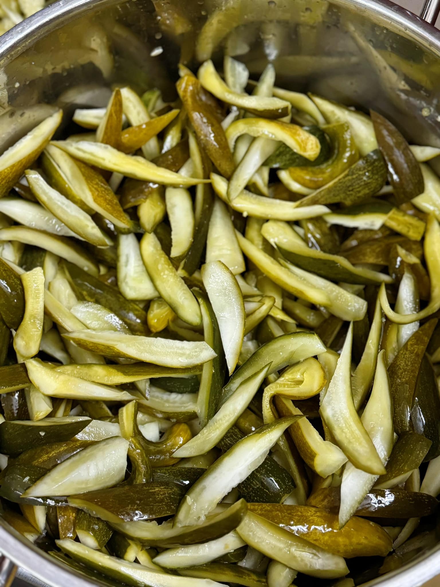 - Sơ chế cắt núm cà pháo đi, ngâm vào nước có pha chanh để khỏi thâm đầu, ngâm chừng 30 phút, đè rổ ngập cà.
