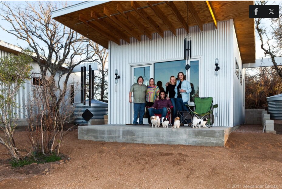 Một thị trấn tí hon dần hình thành, gồm bốn ngôi nhà 37 m2, chi phí xây dựng 40.000 USD một căn. Dù chung thiết kế, mỗi căn đều mang dấu ấn riêng và có tầm nhìn hướng ra sông. Vỏ ngoài bằng thép phản nhiệt để chống lại cái nóng của Texas, nội thất gỗ mang lại cảm giác ấm cúng, đủ không gian cho giường đôi, sofa và phòng tắm.